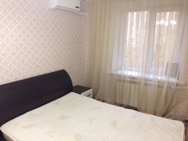 В центре города сдается 3-к квартира в хорошем состоянии, со свежим капитальным ремонтом. Общая площадь 68кв.м., 3 этаж из 5, комнаты изолированные, установлены пластиковые окна, лоджия застеклена, ламинат, санузел совмещенный, облицован современным кафелем, металлическая входная дверь. Квартира полностью меблирована новой мебелью(из спальных мест — угловой диван, двуспальная кровать, диван) и со всей необходимой бытовой техникой (холодильник, телевизор, стиральная машина-автомат, СВЧ печь, вытяжка, кондиционер, пылесос, утюг с гладильной доской).