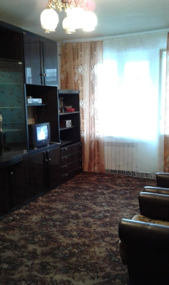 Сдается квартира в центре города, 5/5, смежные комнаты (из зала 2 спальни), чистая, трубы полипропилен, окна деревянные, счетчики на воду и свет, без холодильника и стиральной машины. В наличии: шкаф для одежды, диван, 2 кресла, стенка.