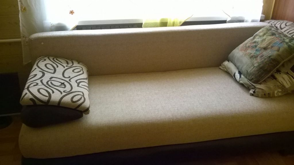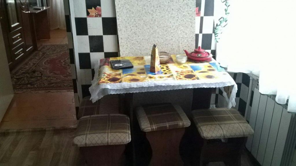 Полностью меблирована (диван с креслами, мини-диван, стенка, компьютерный стол, прихожая, кухонный гарнитур, обеденный стол и пр.) и со всей необходимой бытовой техникой (холодильник, телевизор, стиральная машина-автомат, водонагреватель, электрический чайник).