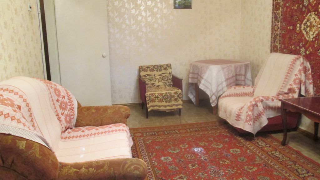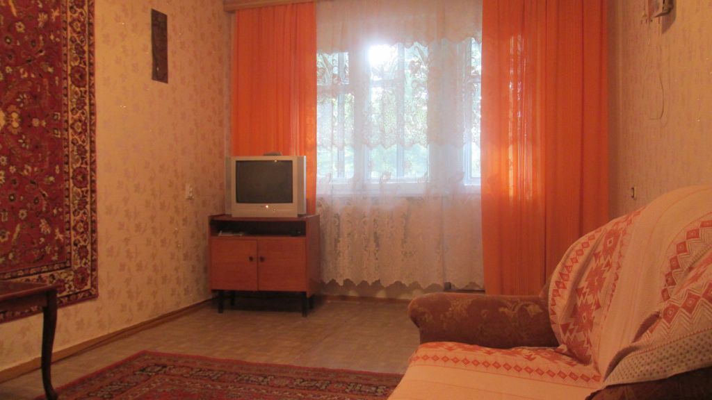 Полностью меблирована — диван с креслами, 2 кровати, шкаф, кухонный гарнитур и другая мебель; также есть холодильник и телевизор.
