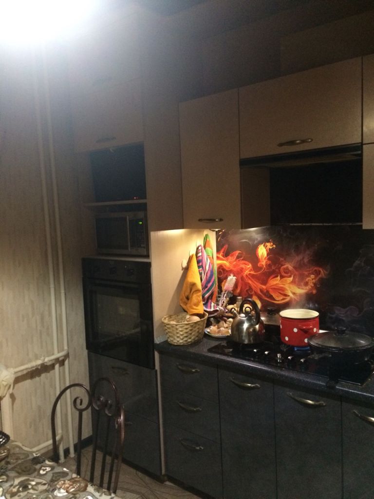 Квартира полностью укомплектована дорогой мебелью и всей необходимой бытовой техникой — холодильник, телевизоры, стиральная машина-автомат, электрический чайник, духовой шкаф, СВЧ печь, вытяжка, водонагреватель, кондиционер.