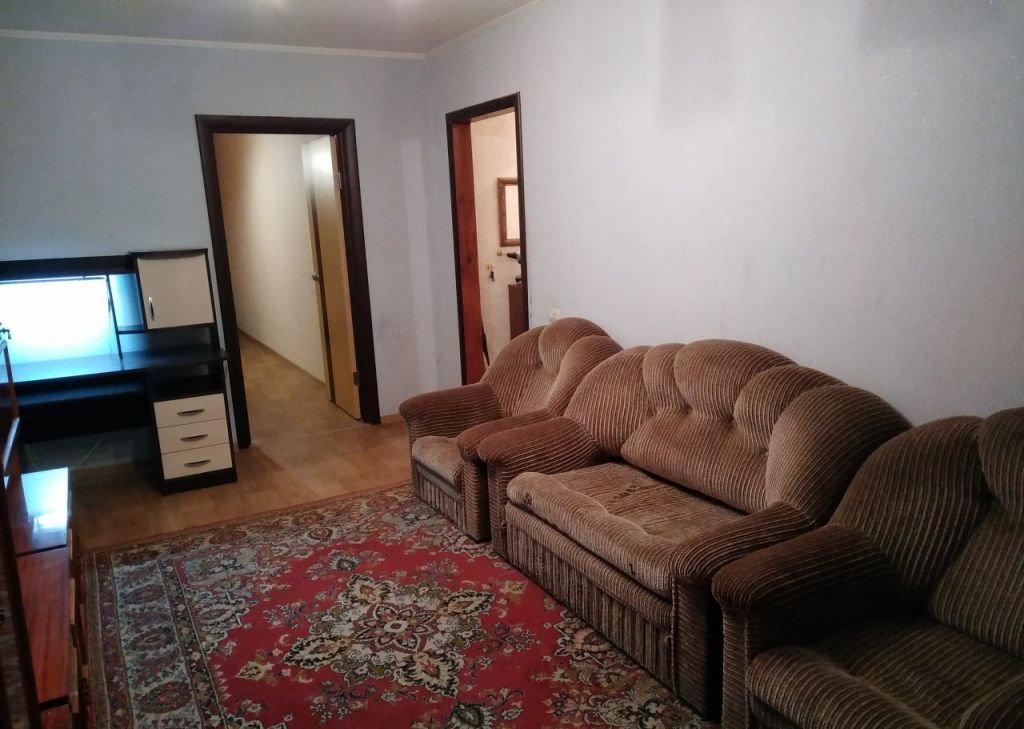 в зале: два кресла и диван, компьютерный стол, стенка