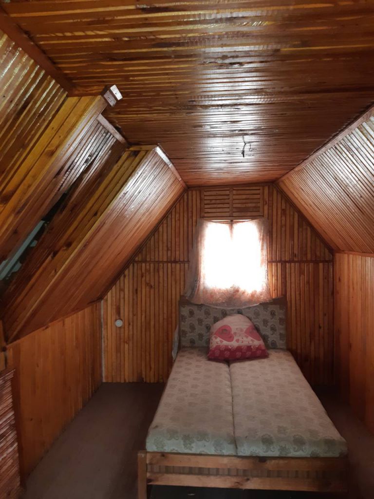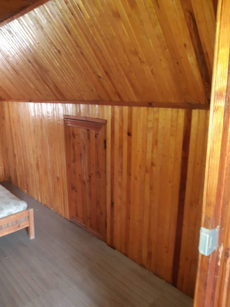Садовый дом 28кв.м. на земельном участке правильной формы площадью 5 соток. Хороший ленточный фундамент, материал стен — кирпич, крыша мансардного типа, балкон с прекрасным видом, лестница на мансардный этаж. Косметический ремонт, русская печь, на окнах решетки, металлическая входная дверь. Удобства во дворе. Территория огорожена, стоит электрический столб, установлены трубы полива. Хороший подъезд к дому. К дому пристроен кирпичный гараж