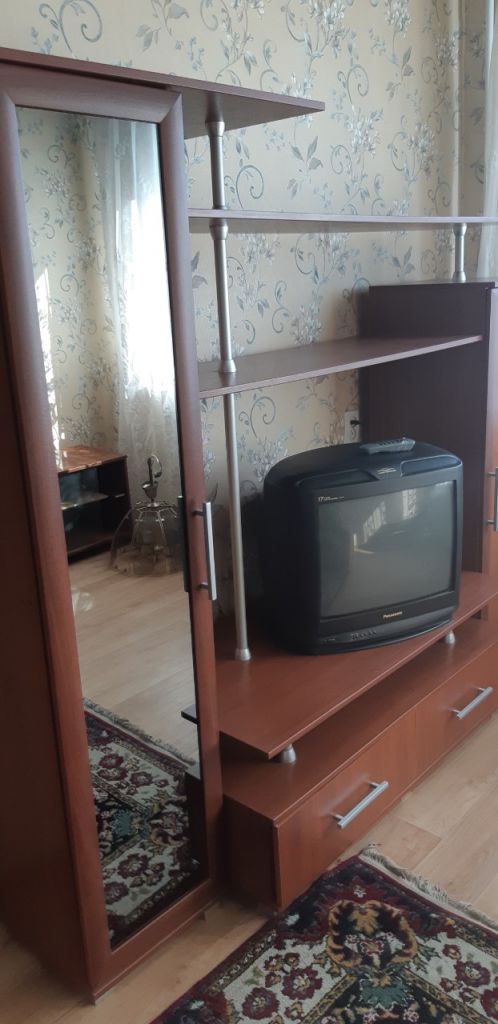 Полностью меблирована (диван, шкаф-купе, небольшая стенка-горка, кухонный гарнитур, обеденный стол со стульям) и со всей необходимой бытовой техникой (стиральная машина-автомат, холодильник, телевизор).