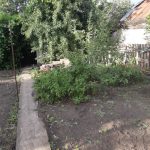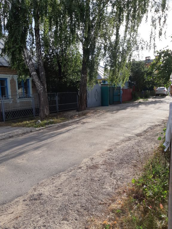 Продается часть дома в центре города. Фундамент ленточный, крыша — шифер. Электричество и газ в доме. Нет канализации и воды. Часть дома (одна комната) построена в 1954 году — она шлаковая. Остальная жилая площадь достроена из кирпича, выкладывалась в 1983 году и в 2018 году. Полы деревянные, оконные рамы тоже. Есть гараж, погреб, сарайчик. Земельный участок — шесть соток, находится в общей долевой собственности, земля не узаконена. На участке плодоносящие деревья.