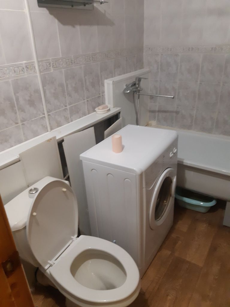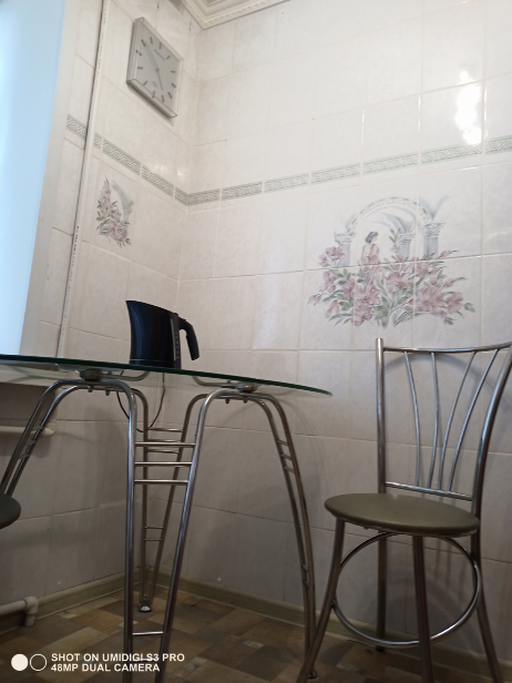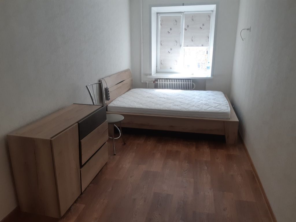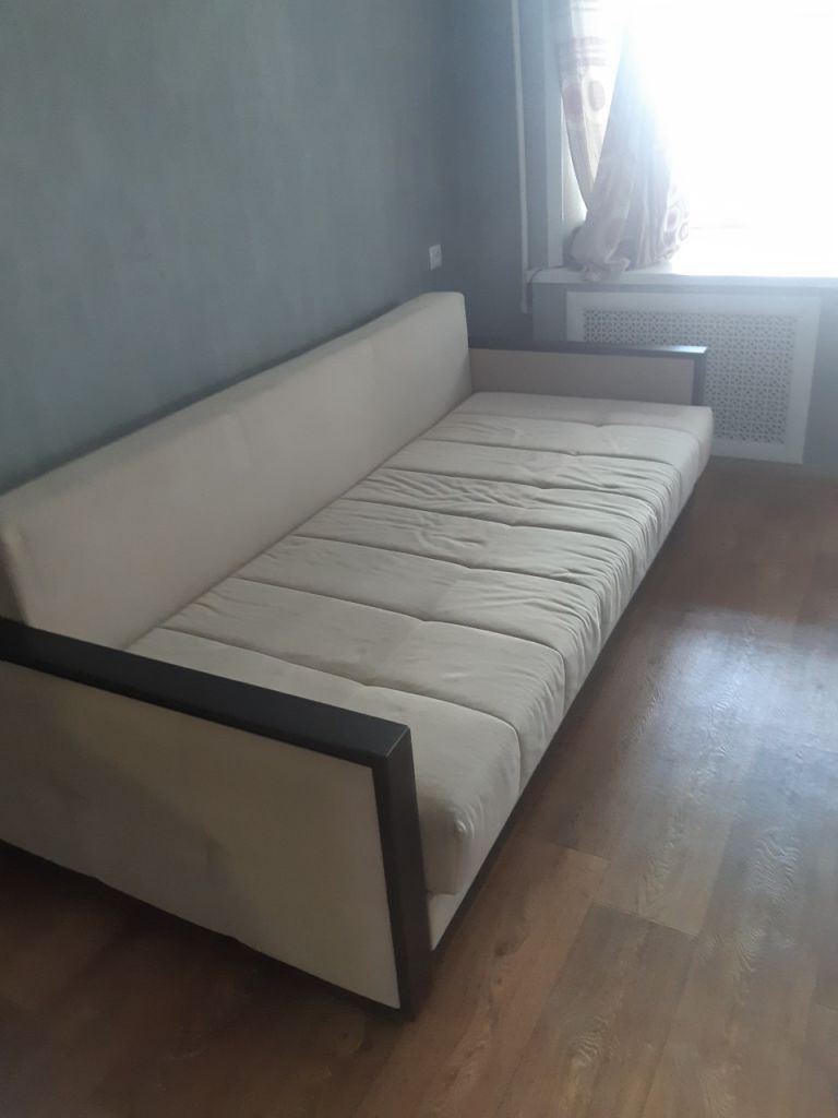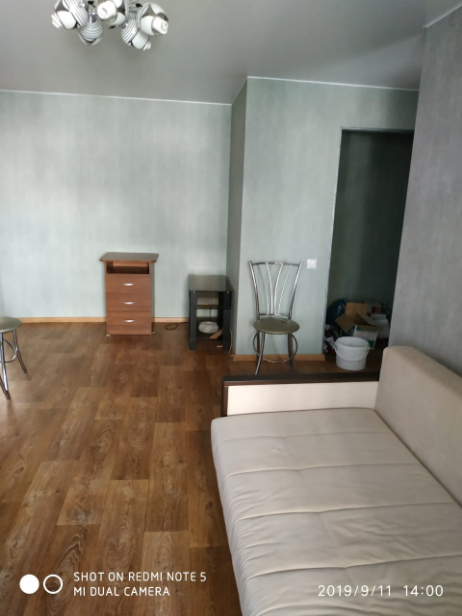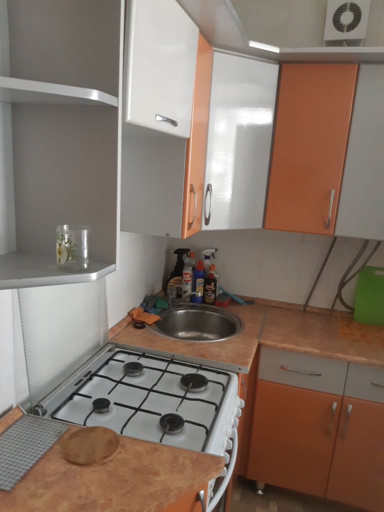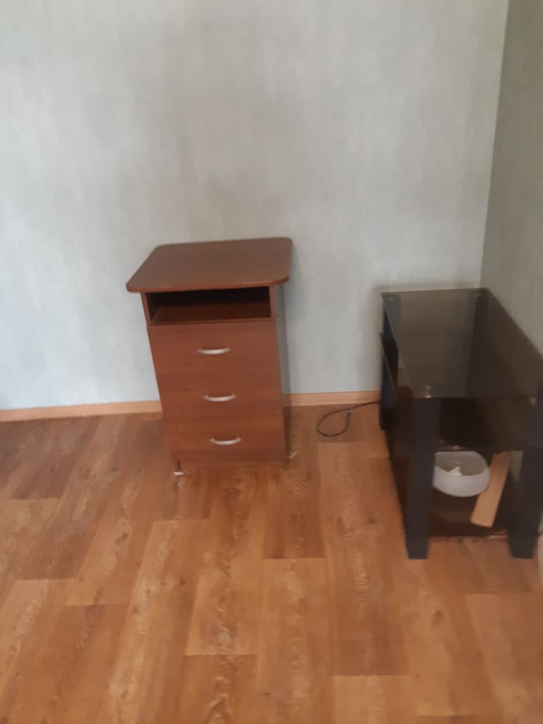Квартира меблирована (диван, двуспальная кровать, вместительный шкаф-купе в прихожей, угловой шкаф, комод, встроенная кухня, обеденный стол со стульями и прочее) и со всей необходимой бытовой техникой (холодильник, телевизор, стиральная машина-автомат, эл.чайник).