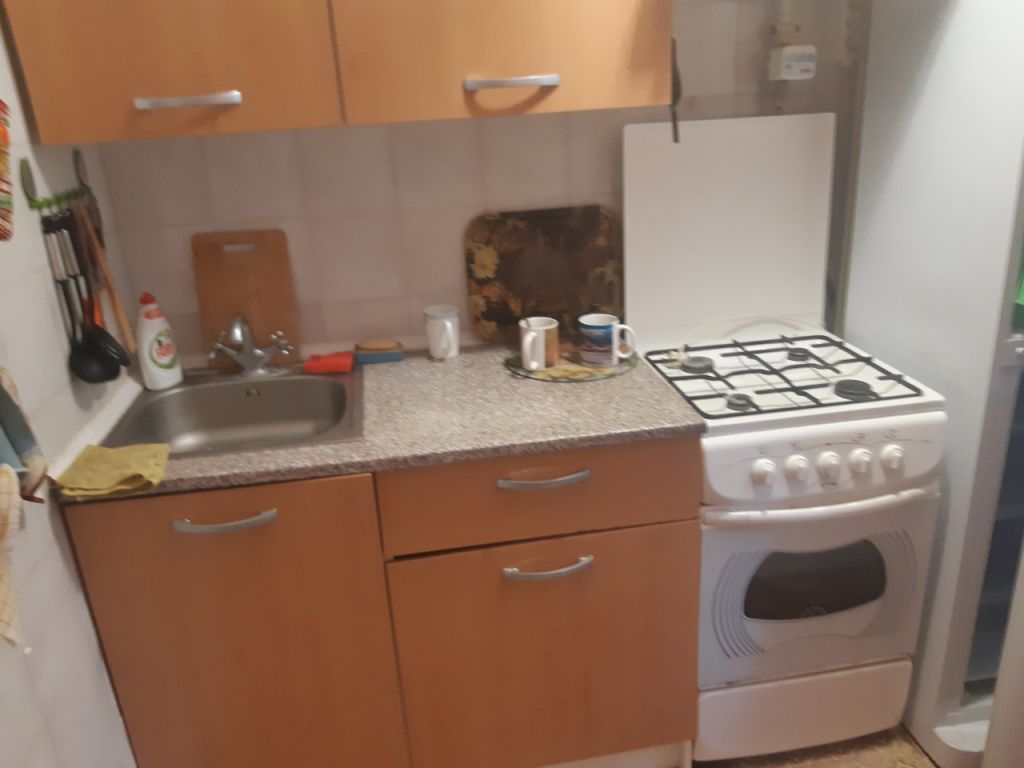 Квартира полностью меблирована — угловой диван, двуспальная кровать, шкаф, шкаф-купе в прихожей, кухонная мебель и прочее; также есть необходимая бытовая техника (стиральная машина — автомат, холодильник, телевизор, СВЧ печь, эл.чайник, вытяжка).