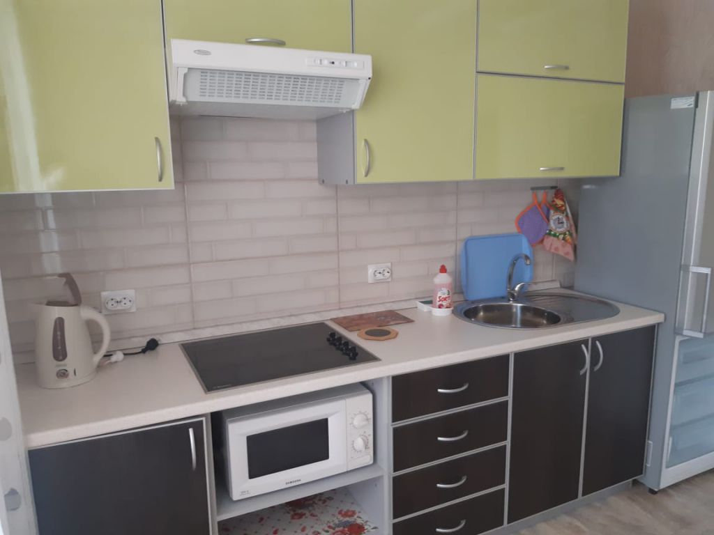 В ЖК Солнечный сдается новая 1-х комнатная квартира на длительный срок, 9 этаж из 17, общая площадь 45кв.м. Свой уютный двор с детской площадкой, 2 лифта — пассажирский и грузовой. Сделан хороший современный ремонт. Окна пластиковые, лоджия застеклена, на полу ламинат, качественные межкомнатные двери, санузел совмещенный (под современную плитку, подвесной потолок, точечное освещение), металлическая входная дверь, домофон. Квартира полностью укомплектована современной мебелью (спальный гарнитур, мягкая мебель, кухонный гарнитур и прочее), бытовой техникой (двухкамерный холодильник, стиральная машина-автомат, телевизор, СВЧ печь, водонагреватель, кондиционер), также есть необходимая посуда и постельное белье.