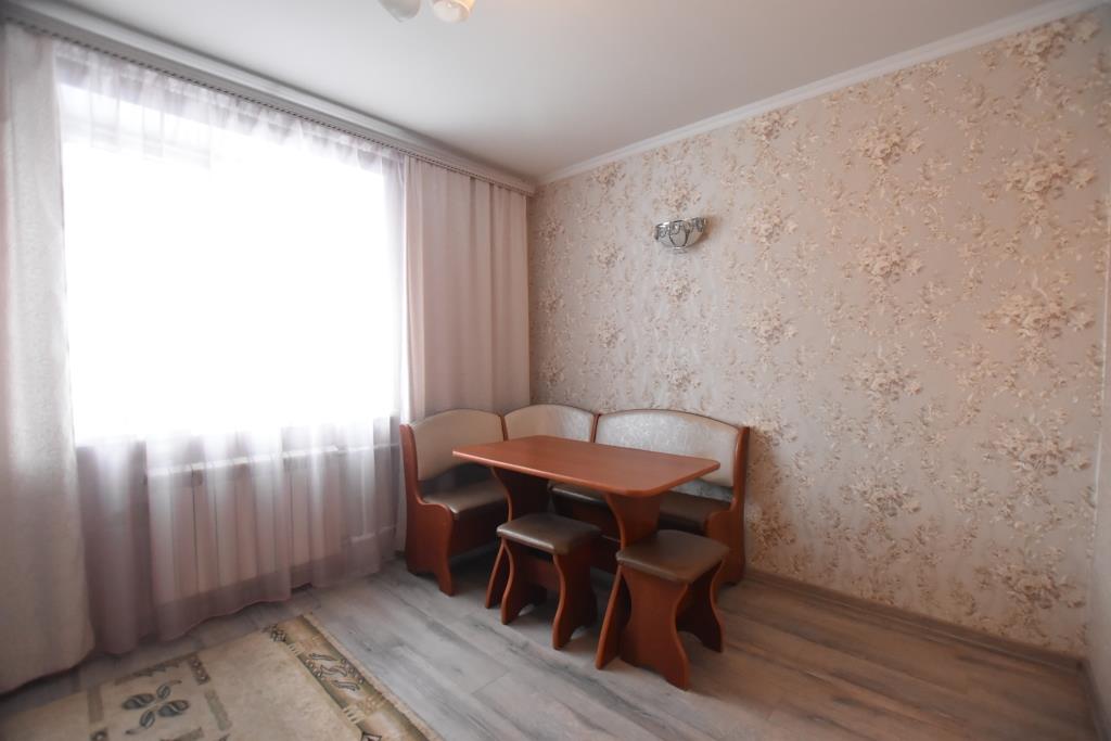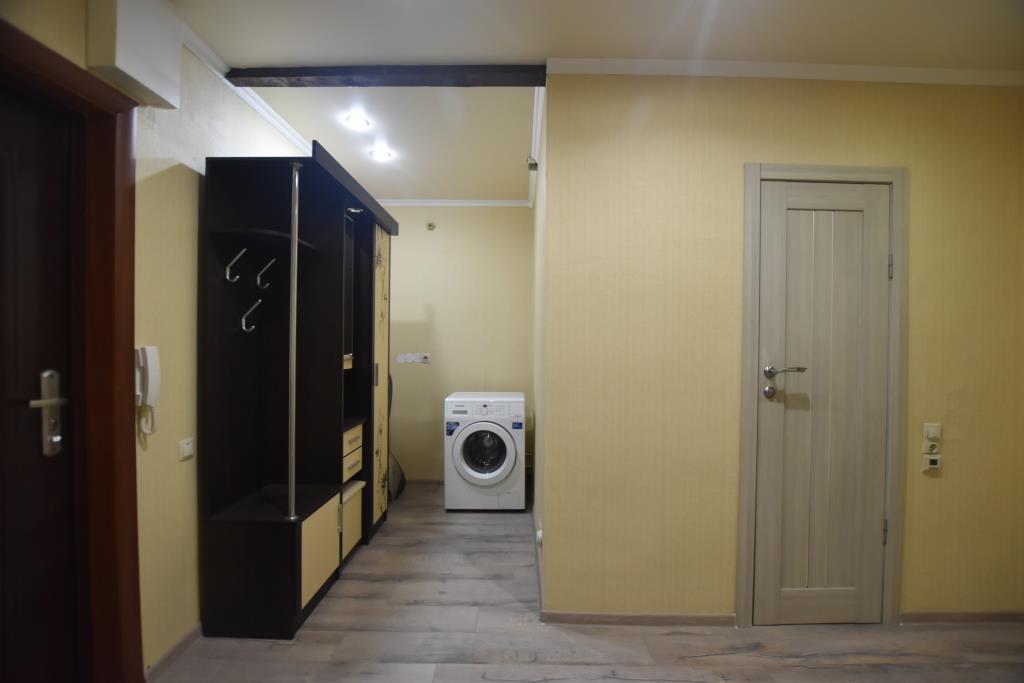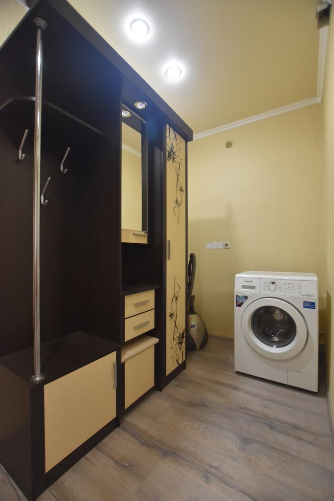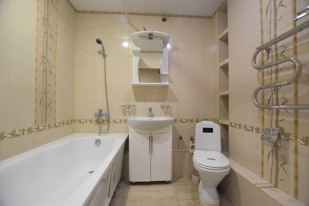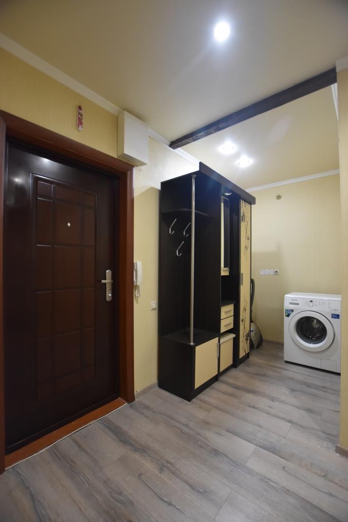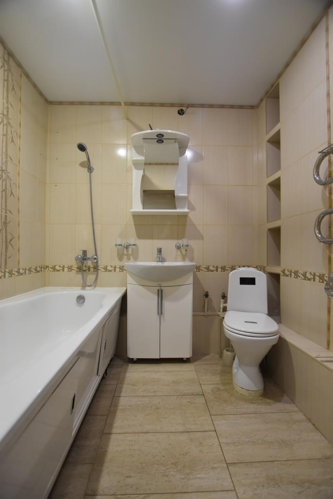 Квартира в отличном состоянии, с современным дорогим ремонтом, лоджия застеклена, на полу ламинат, подвесные потолки, санузел совмещенный, отделан современной плиткой, установлены необходимые приборы учета, домофон, металлическая входная дверь. Квартира полностью укомплектована новой мебелью (двуспальная кровать, угловой диван, стенка-горка, встроенная кухня, прихожая и др) и со всей необходимой бытовой техникой