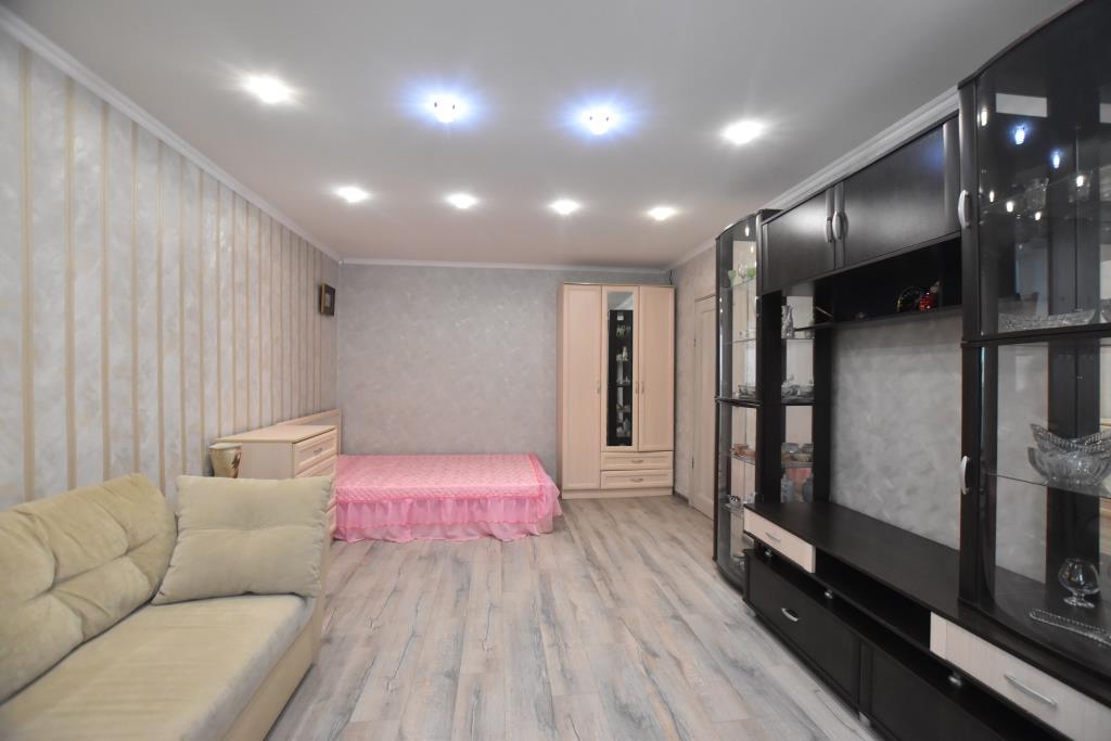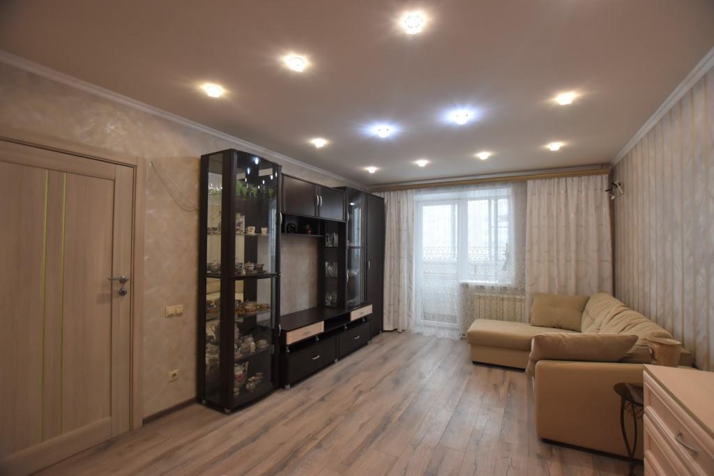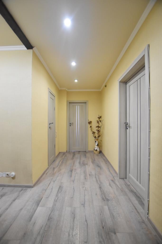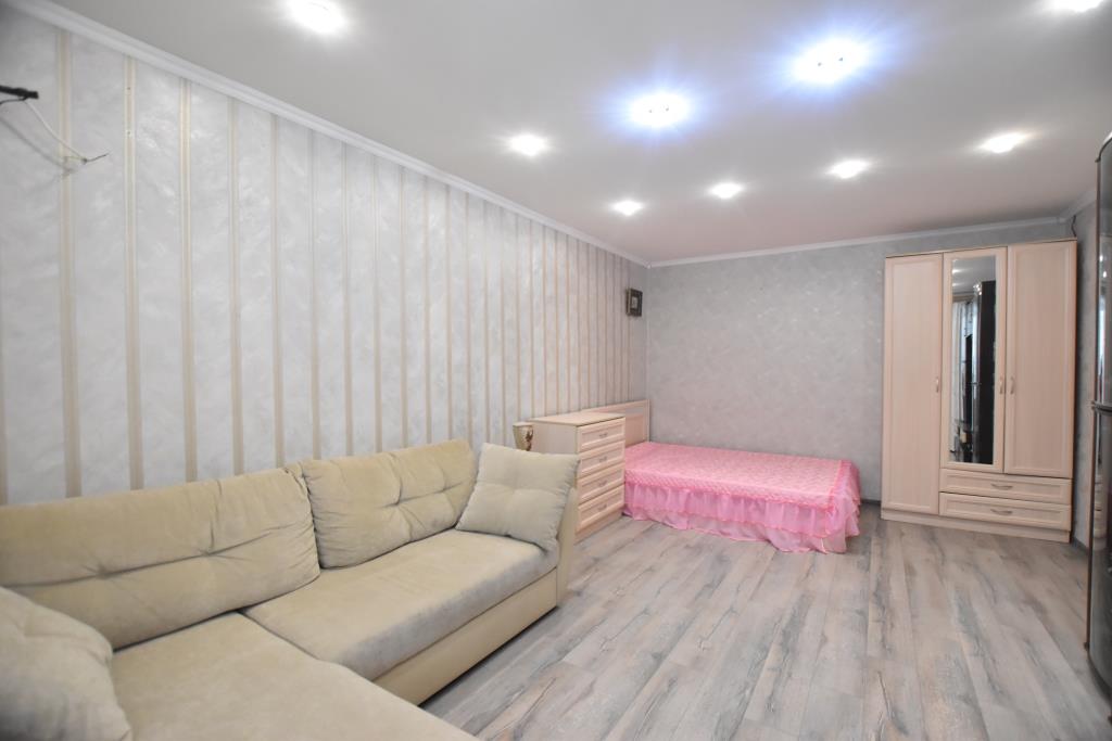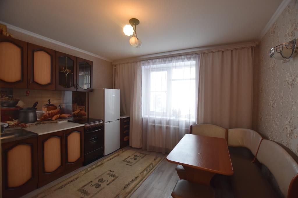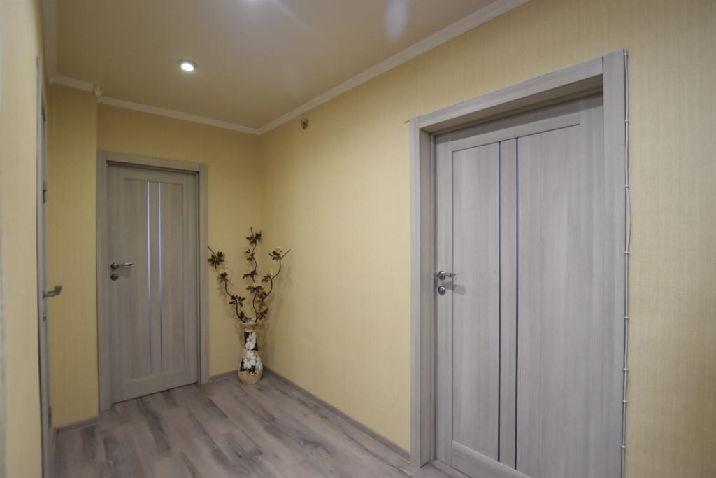 Квартира в отличном состоянии, с современным дорогим ремонтом, лоджия застеклена, на полу ламинат, подвесные потолки, санузел совмещенный, отделан современной плиткой, установлены необходимые приборы учета, домофон, металлическая входная дверь. Квартира полностью укомплектована новой мебелью (двуспальная кровать, угловой диван, стенка-горка, встроенная кухня, прихожая и др) и со всей необходимой бытовой техникой
