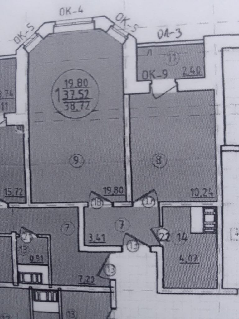 1. Плoщaдь: общая- 39,0 кв. м. , куxня — 10,0 кв.м., жилая — 19,8 кв.м.