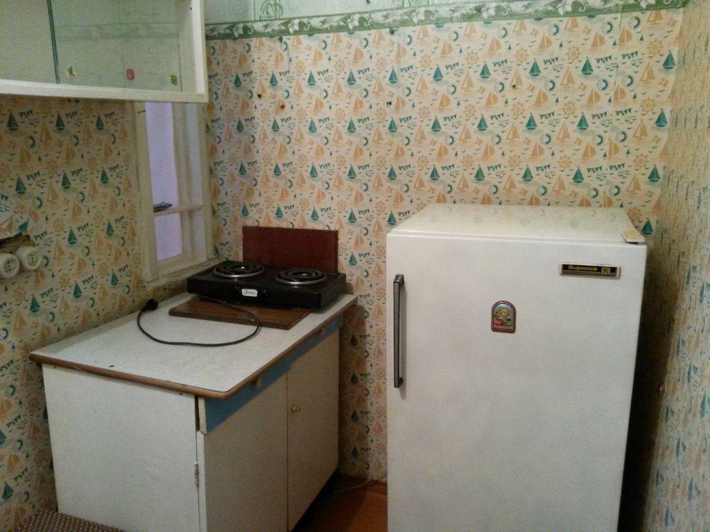 1-комнатная Молодоженка 15 м² на 1 этаже 5-этажного кирпичного дома, в нормальном состоянии, окно пластиковое, на полу ковер, санузел совмещен (под покраску), установлены все необходимые счетчики, металлическая входная дверь. Есть холодильник, электрическая плита на 2 конфорки, телевизор. Из мебели — двухспальная кровать, стенка, тумба, кухонные шкафчики. Дом расположен внутри района (2 линия). Остановка общественного транспорта «Дворец Спорта Звездный» в 50 метрах. Замечательное месторасположение — все в шаговой доступности.