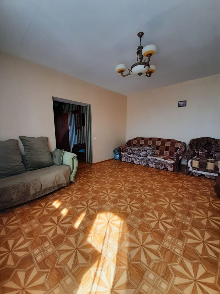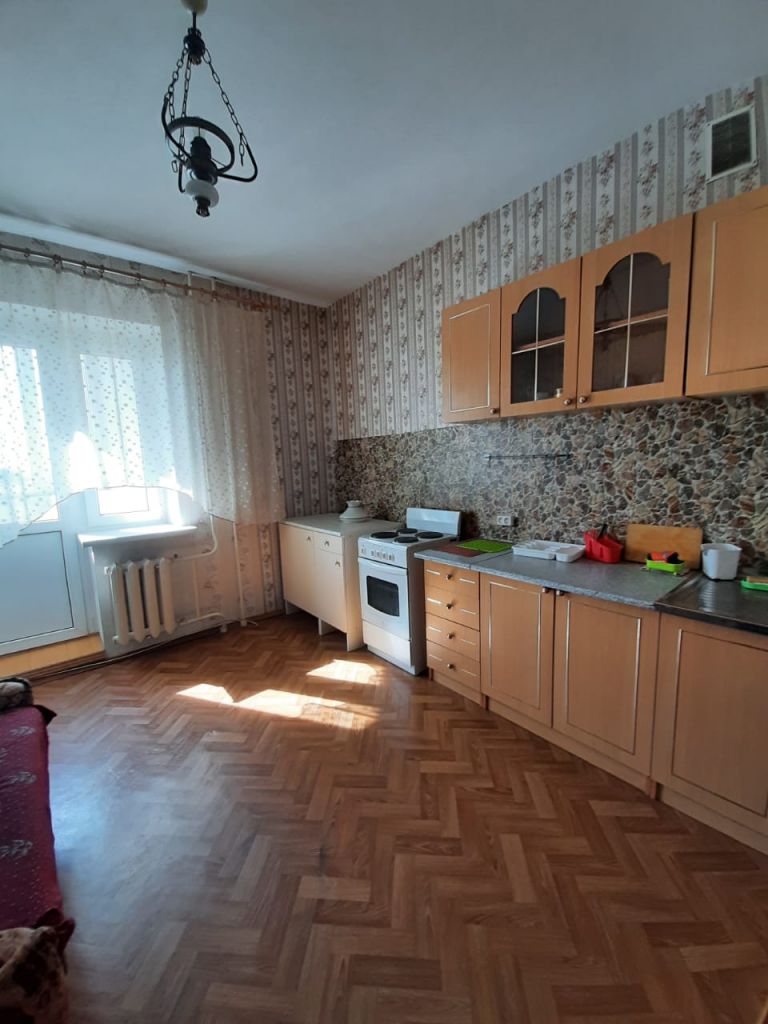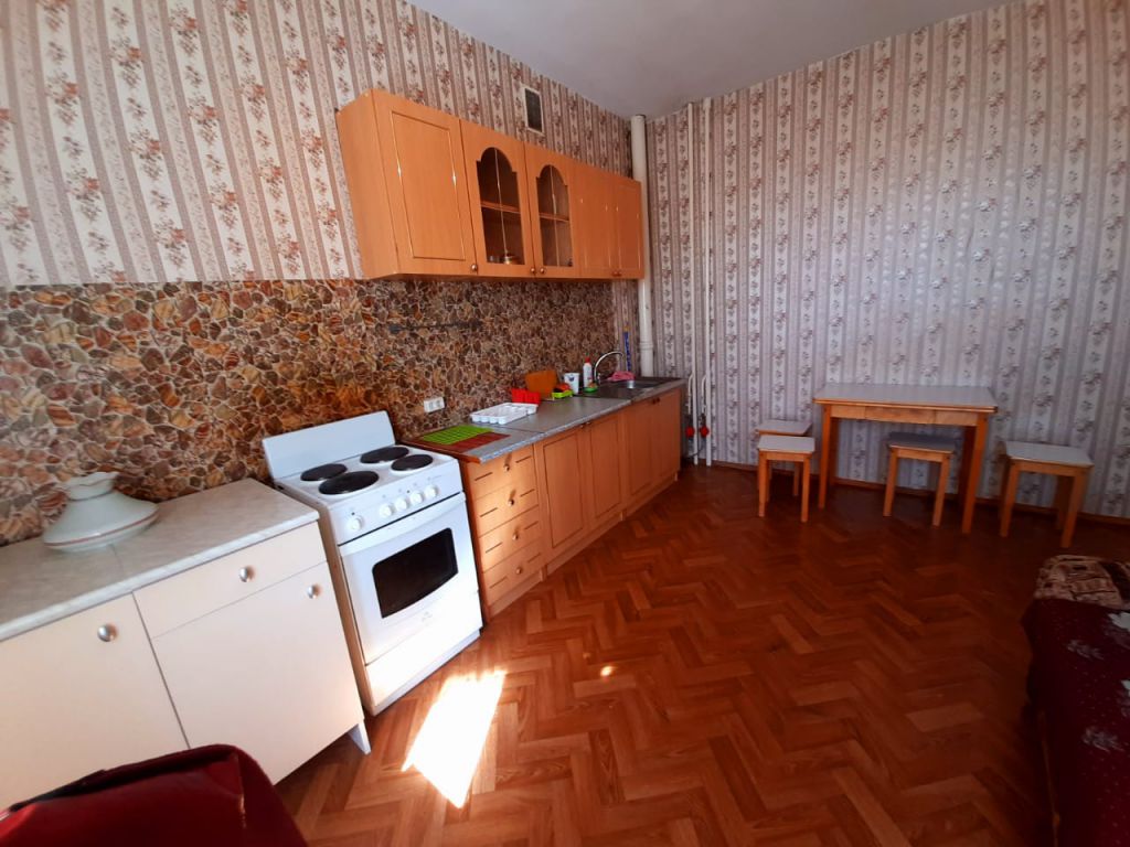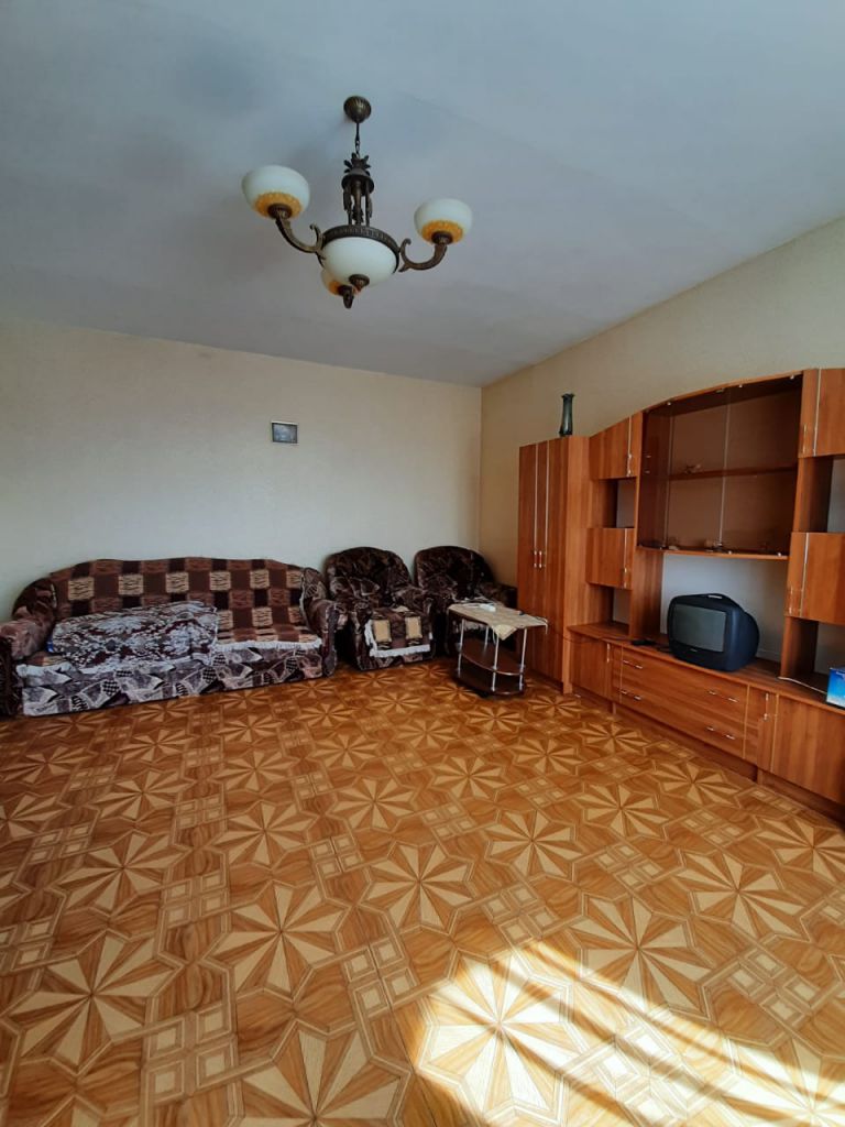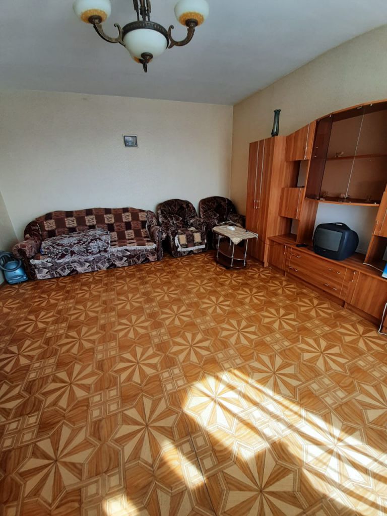 1-к квартира на 5 этаже из 13, 43 кв.м. Крупногабаритная квартира в хорошем состоянии, с ремонтом. Окна пластиковые, лоджия застеклена, на полу линолеум, санузел совмещен. Полностью меблирована (диван с креслами, стенка, журнальный столик, кухонный гарнитур, диванчик на кухне, обеденный стол со стульями) и с бытовой техникой (холодильник, телевизор, стиральная машина-автомат, водонагреватель).
