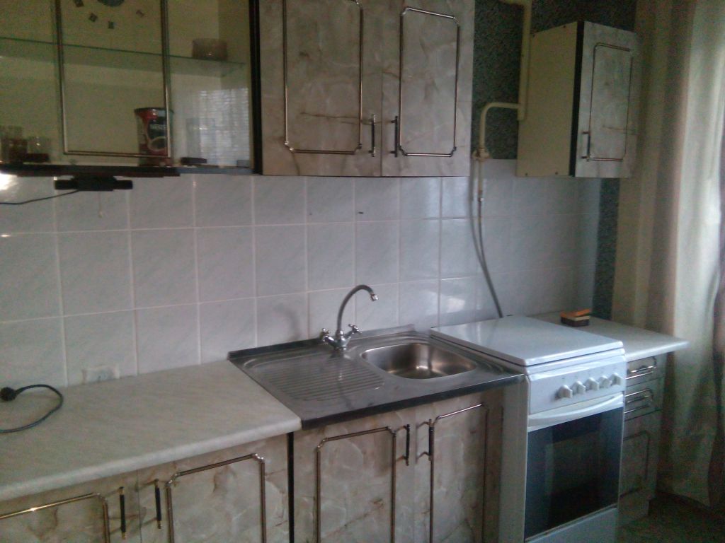 Сдается 2-к квартира на 1 этаже (этаж высокий), 50кв.м., в хорошем состоянии, с обычным ремонтом, окна пластиковые (без решеток), лоджия застеклена, санузел раздельный (ванная облицована современным кафелем, туалет — под покраску). Полностью меблирована (диван с креслами, кровати, стенка, шкафы, кухонный гарнитур и др.) и со всей необходимой бытовой техникой (холодильник, телевизор, стиральная машина-автомат).